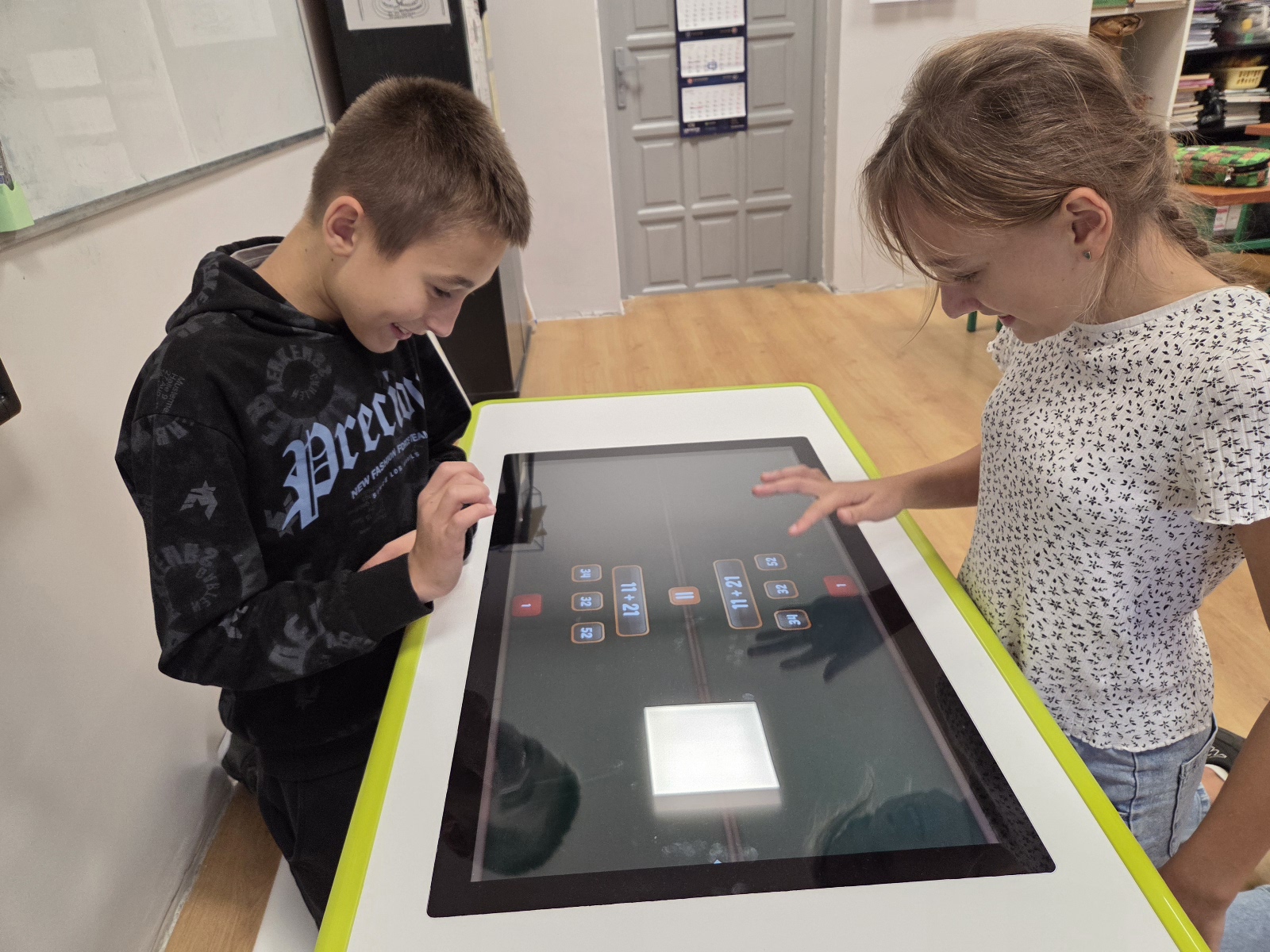 🧮 Na dzisiejszych zajęciach dodatkowych z matematyki uczniowie zmierzyli się w emocjonujących potyczkach matematycznych! 💪Zamiast tradycyjnych zadań w zeszycie, wykorzystaliśmy stolik interaktywny, …