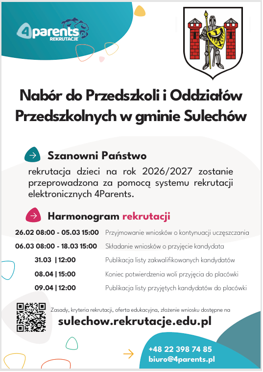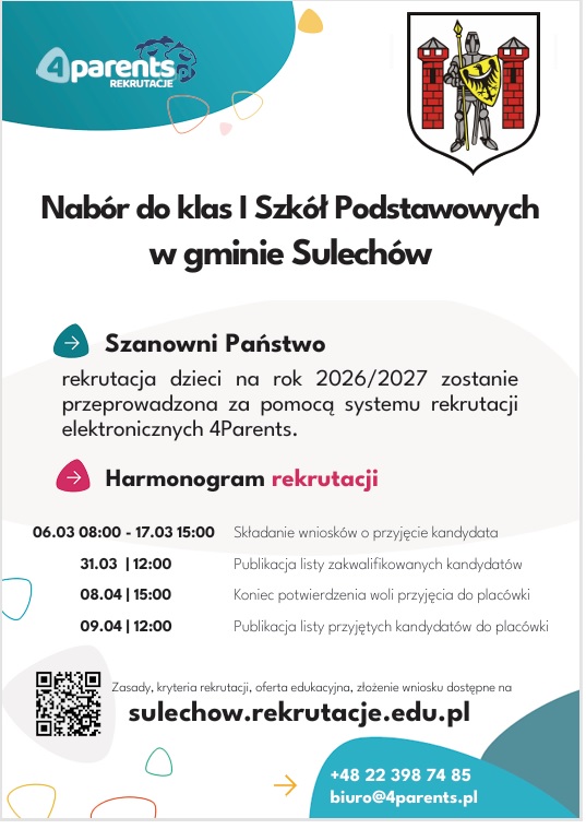 Przedstawiamy harmonogram rekrutacji do klasy I szkoły podstawowej oraz do oddziału przedszkolnego na rok szkolny 2026/2027 🎒🧸