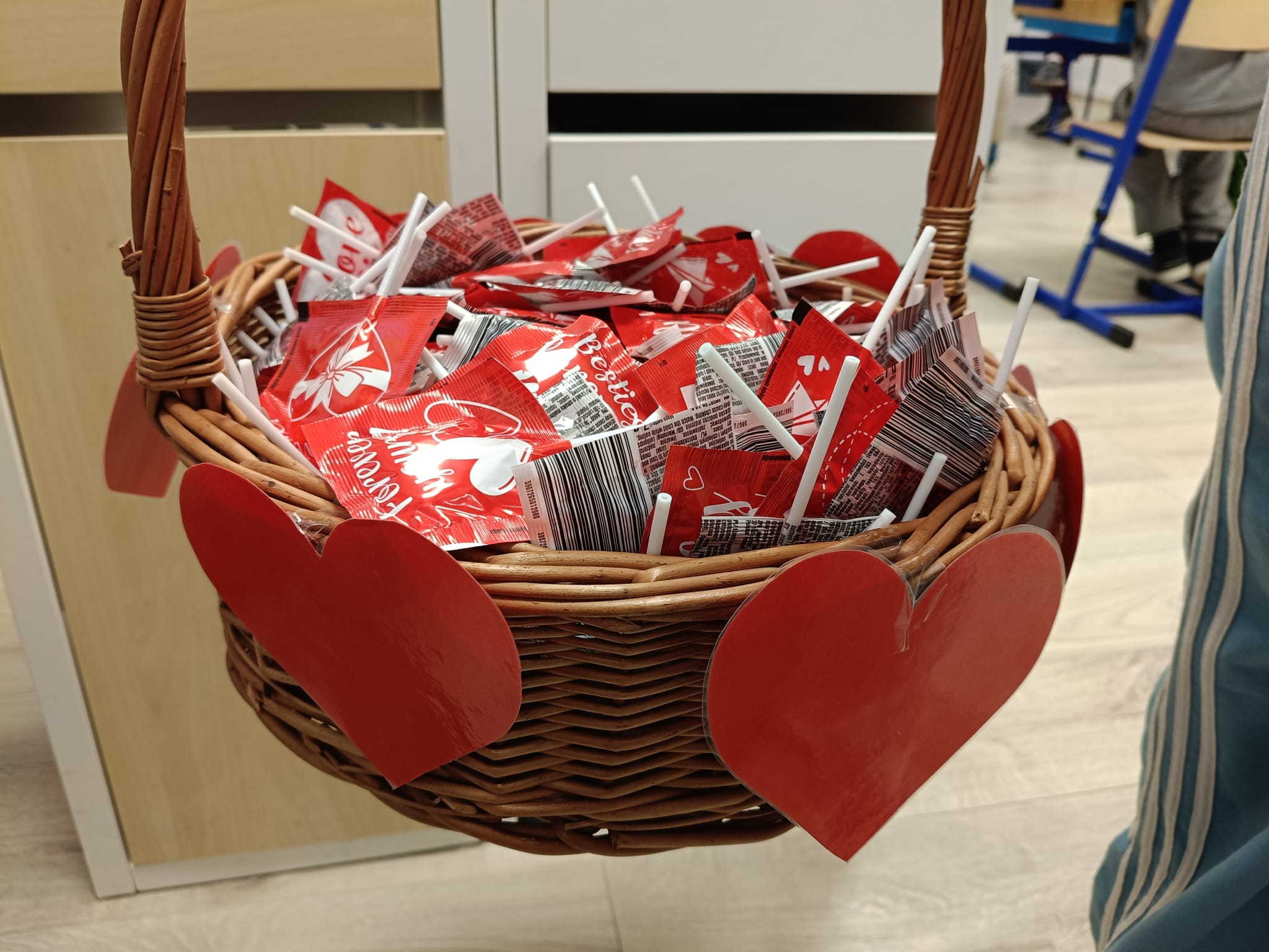 13 lutego w naszej szkole świętowaliśmy walentynki ❤️ Tego dnia Samorząd Uczniowski rozdał wszystkim uczniom lizaki w kształcie serca, a dzięki poczcie walentynkowej każdy mógł podarować drugiej osobie radość 🥰