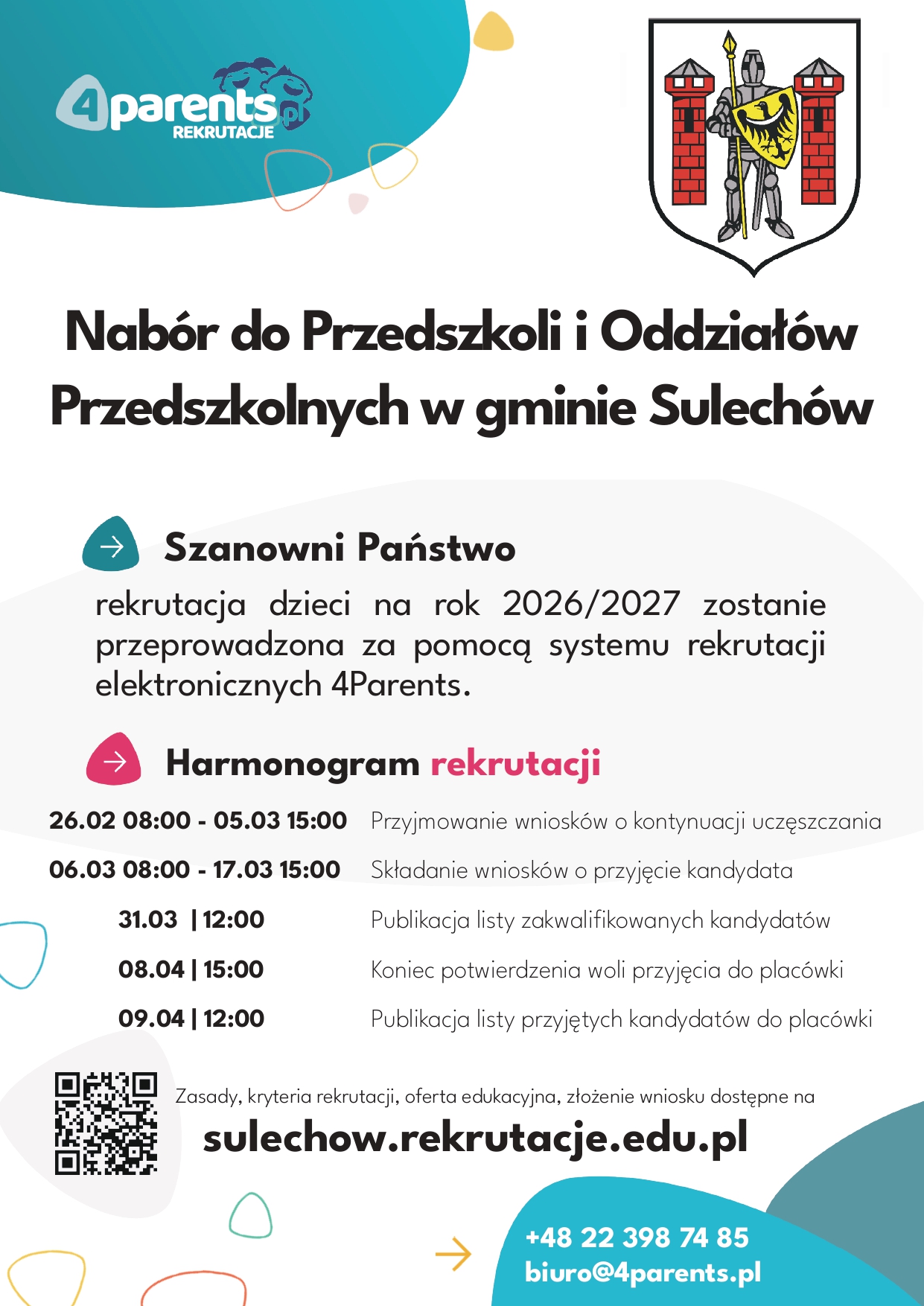informujemy, że zmianie uległy terminy rekrutacji do oddziału przedszkolnego na rok szkolny 2026/2027.