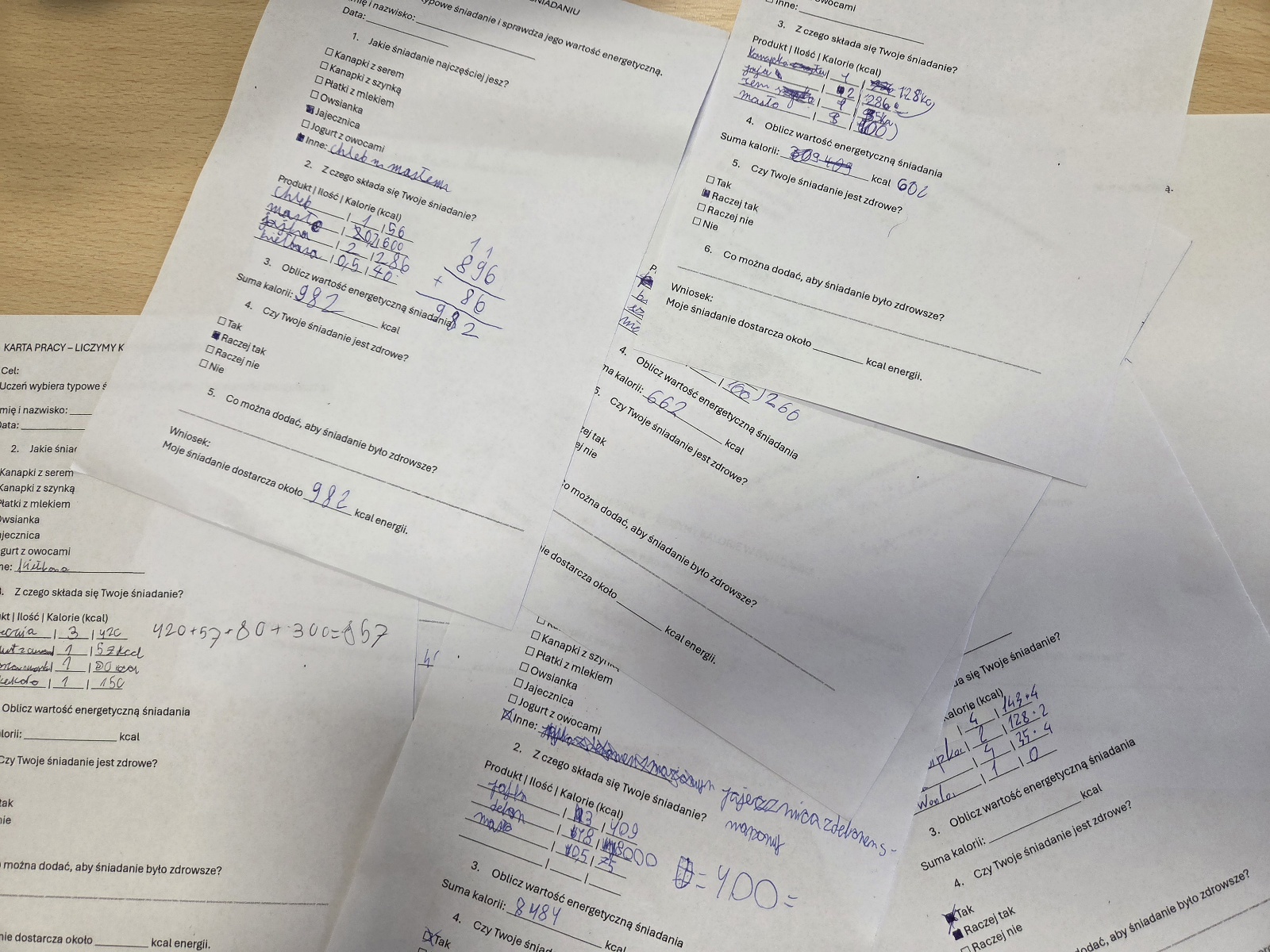 Tym razem uczniowie przyjrzeli się swoim codziennym wyborom żywieniowym. Każdy wybrał swoje typowe śniadanie, a następnie sprawdzał orientacyjną wartość kaloryczną poszczególnych składników. Na końcu wszystko zostało zsumowane – i matematyka znów okazała się bardzo praktyczna!