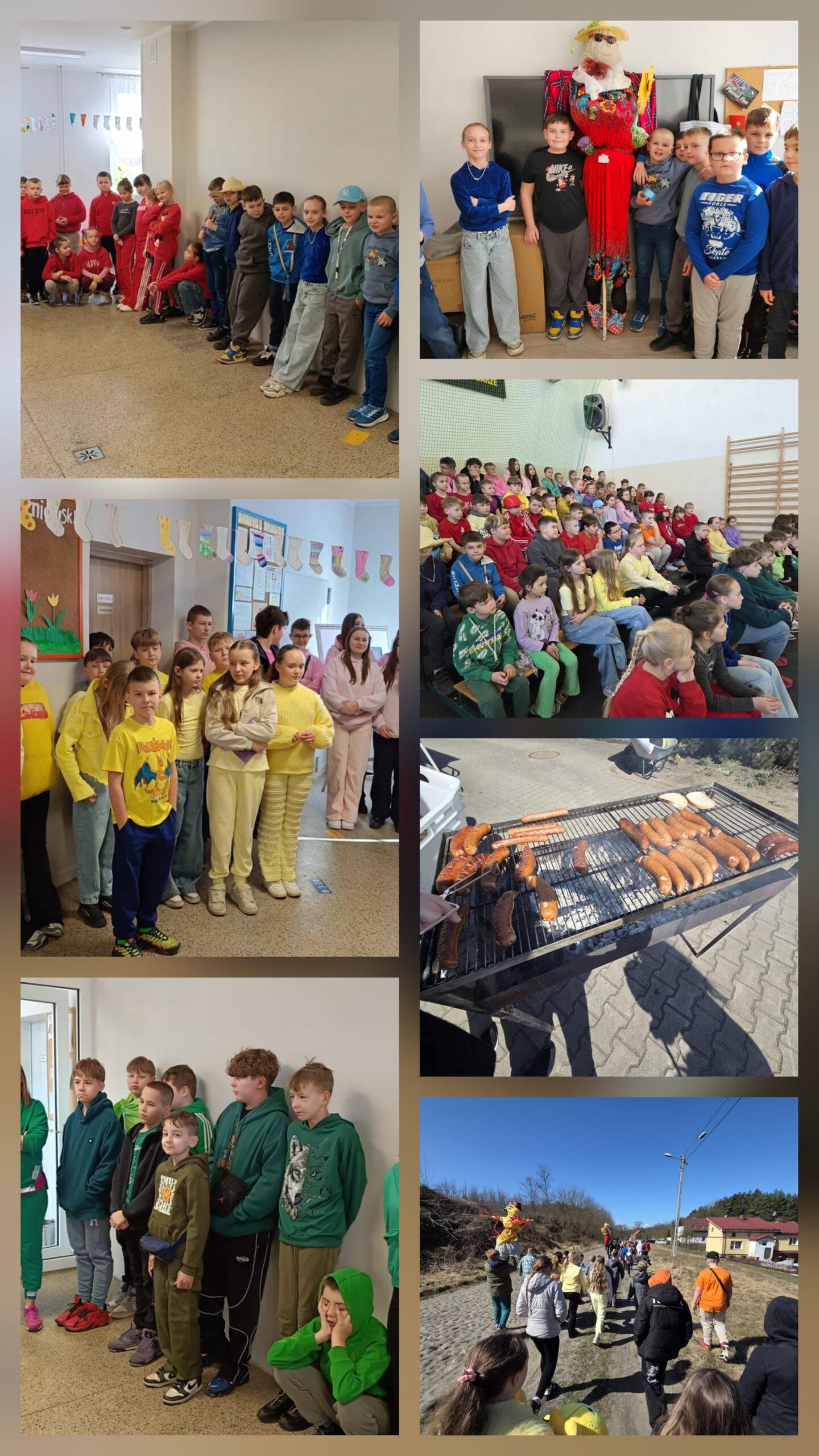 Uczniowie wszystkich klas wzięli udział w zabawach i konkurencjach, które dostarczyły mnóstwo uśmiechu i pozytywnej energii! ☀️ Każda klasa wykazała się ogromną kreatywnością, przygotowując własną „Panią Wiosnę” 👌👏 Nie zabrakło również wiosennego korowodu – przy dźwiękach muzyki pomaszerowaliśmy po pobliskiej okolicy, witając nową porę roku 🎶🌿